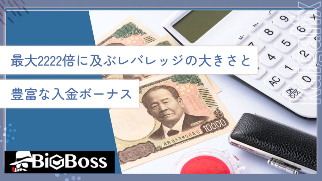 最大2222倍に及ぶレバレッジの大きさと、豊富な入金ボーナス