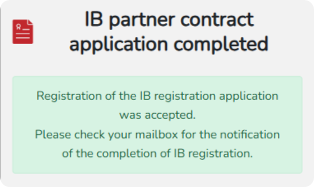 IBパートナー契約申請受付完了画像 スマホ版IBパートナー契約申請受付完了画像