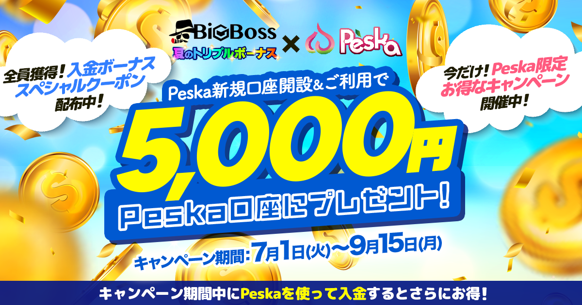 We are running a tie-up campaign where if you open a Peska account for the first time and make a “deposit” or “withdrawal” to/from BigBoss, you will receive $35 in your Peska W...