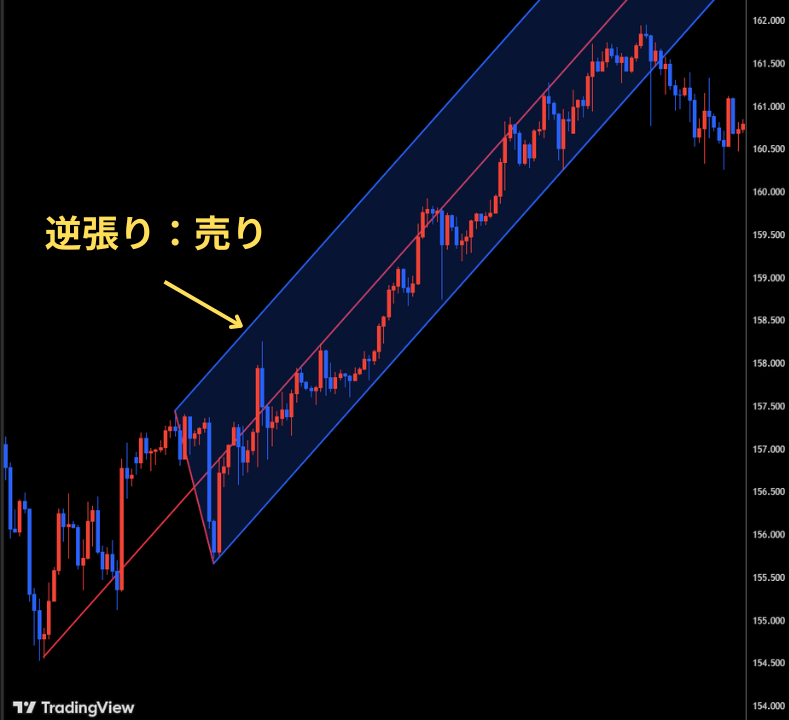 上部チャネルラインタッチで売りエントリー |