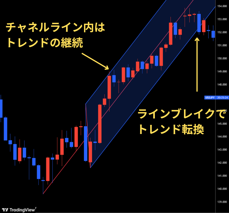 - ラインブレイクによるトレンド転換を見極める