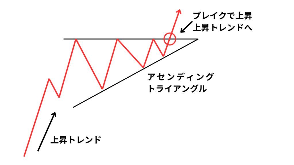 アセンディングトライアングルは、買い勢力が強いことを示すチャートパターンです。