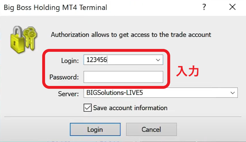 BigBossのMT4かMT5を起動し、ポップアップ画面の