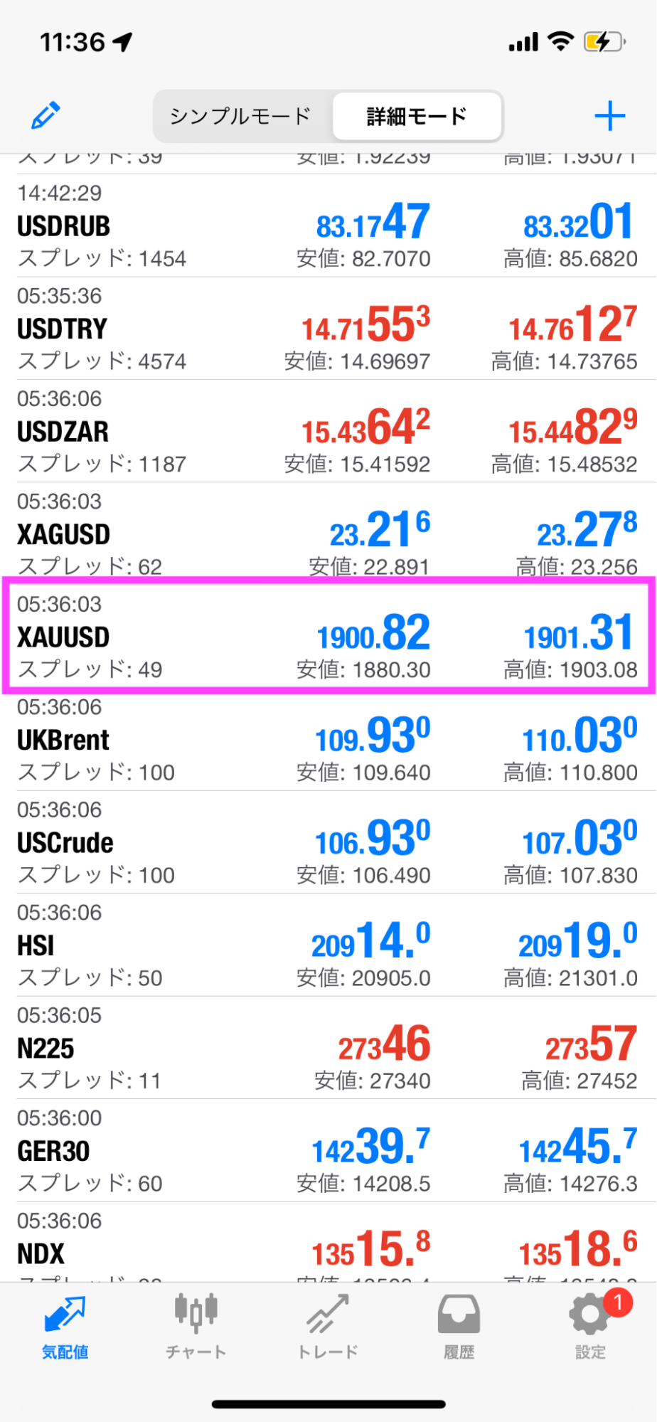 まず、2022年5月5日11時36分時点のスプレッドは、4.9pipsです。