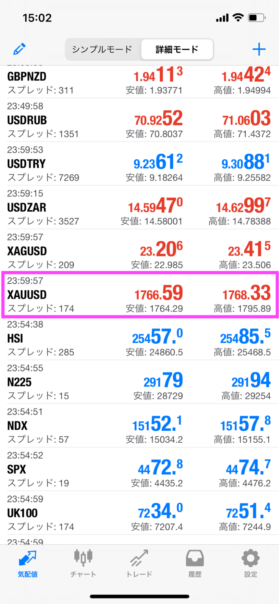 また、ゴールドを取引できる口座は、デラックス口座とスタンダード口座です。プロスプレッド口座では取引ができないので注意が必要です。