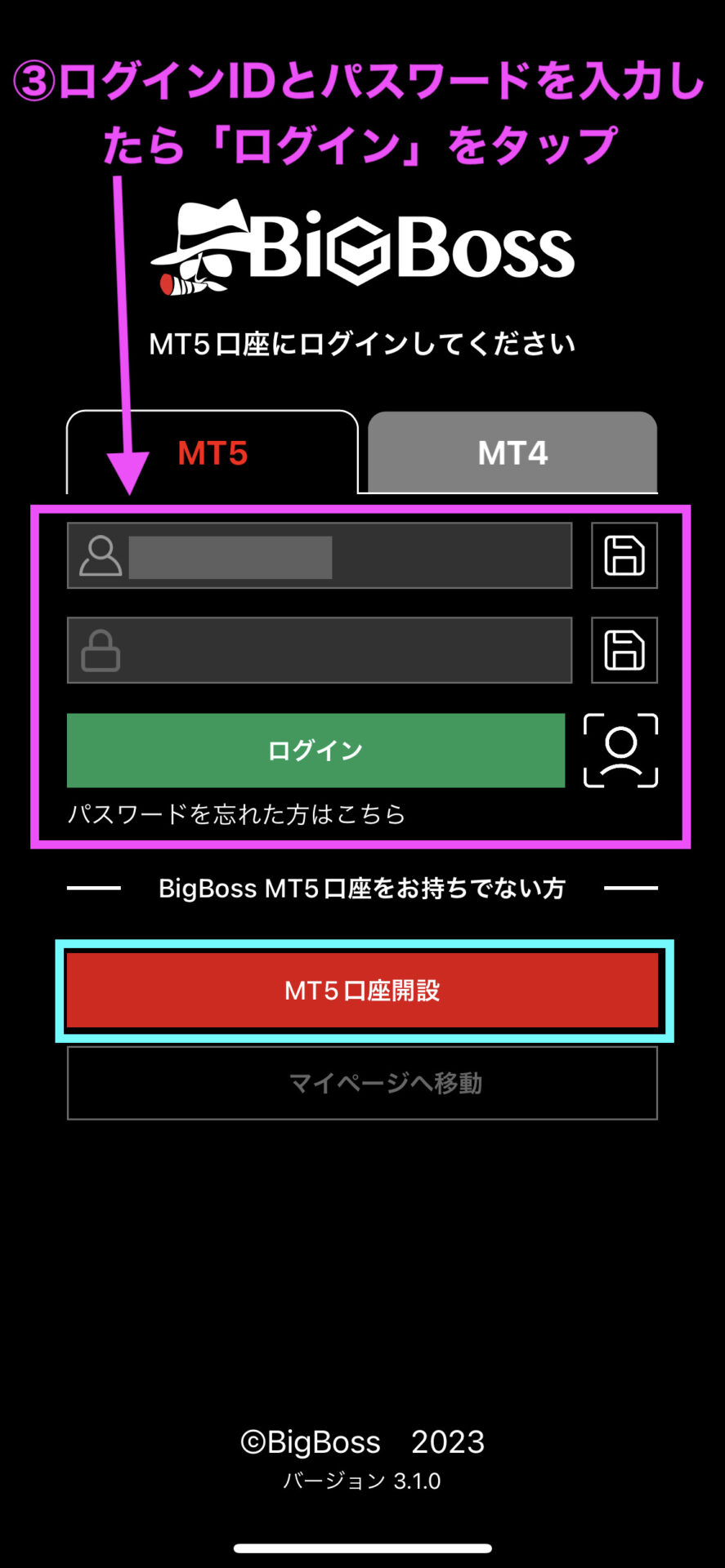 ここからは、BigBoss Trendsのダウンロードからログインまでの手順を解説します。