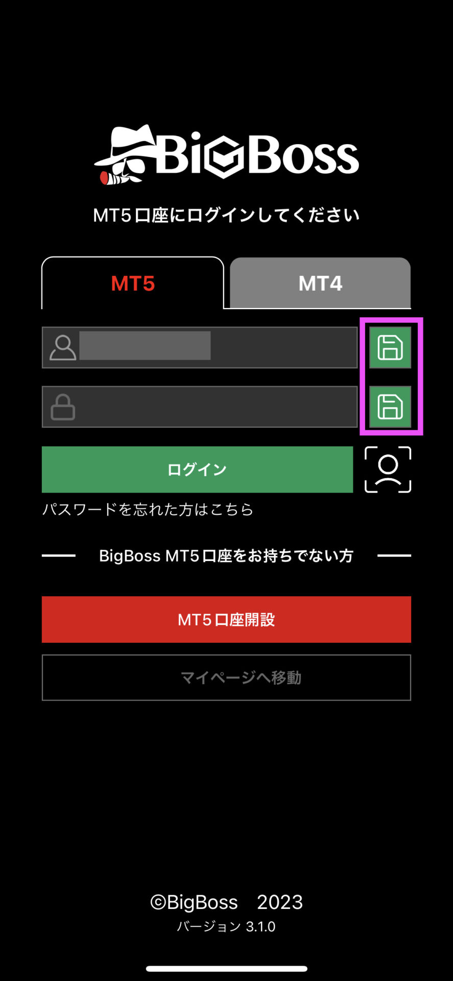 続いて、BigBoss Trendsにログインするために、アプリを起動しましょう。