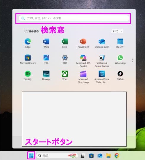 ここでは「スタート」メニューから検索する方法を見ていきましょう。
