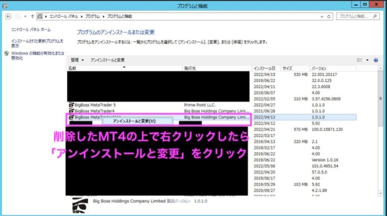 BigBossのMT4も同じ手順でアンインストールが出来るので参考にしてみてください。