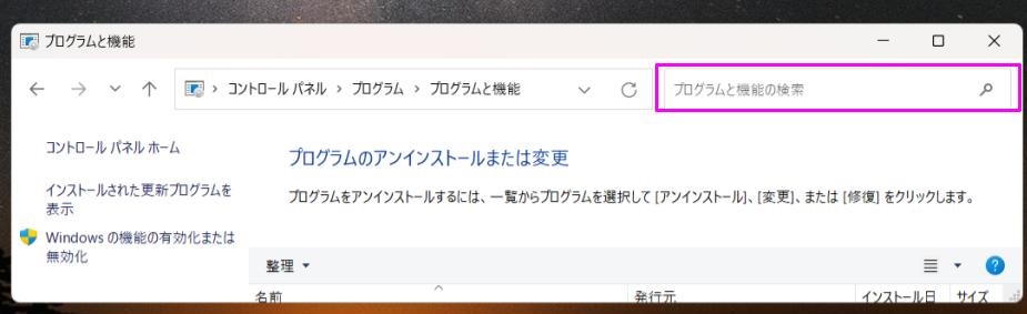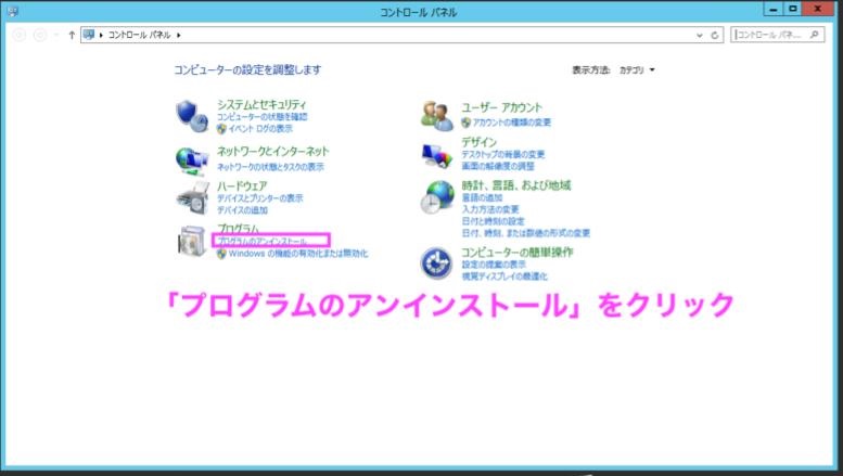 「コントロールパネル」から「プログラムのアンインストール」をクリックします。