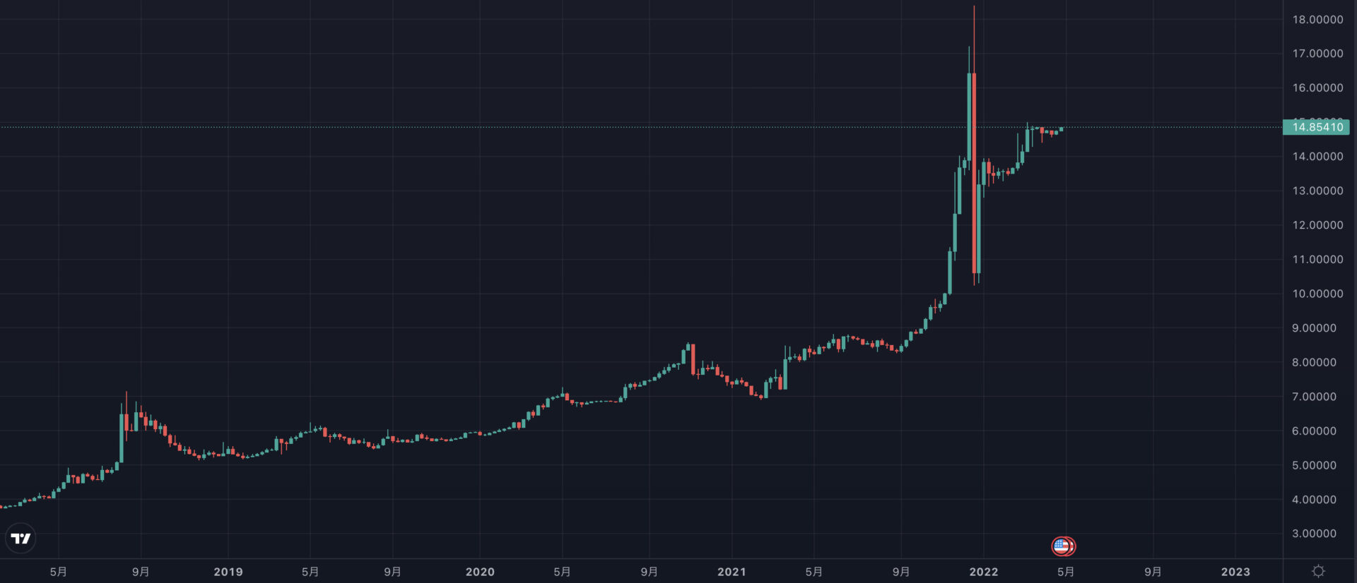 実際に、米ドル/トルコリラは、ここ3年で5ドル台から14ドル台まで上昇し続けています。