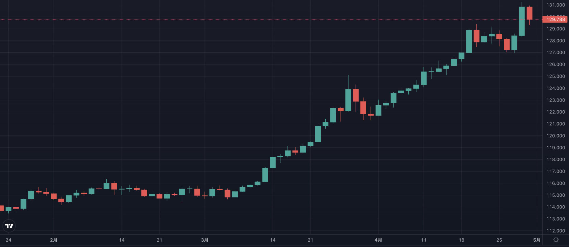 しかし、2022年3月中旬から4月にかけて1ドル115円前後から1ドル129円へと一気に円安が進みました。