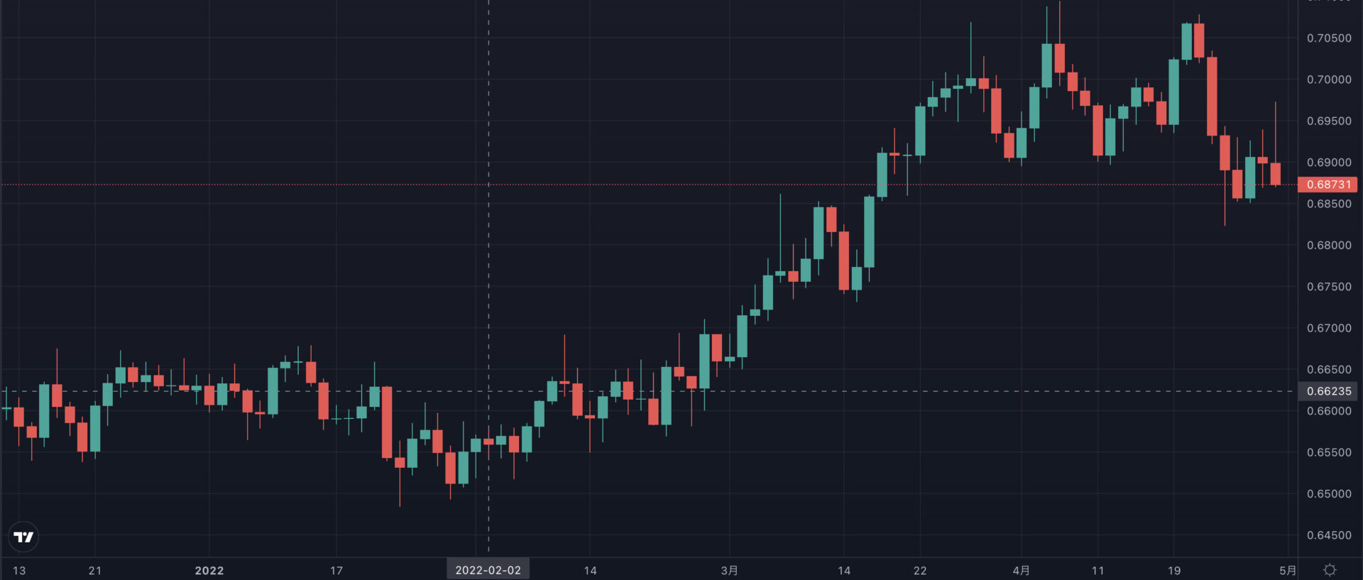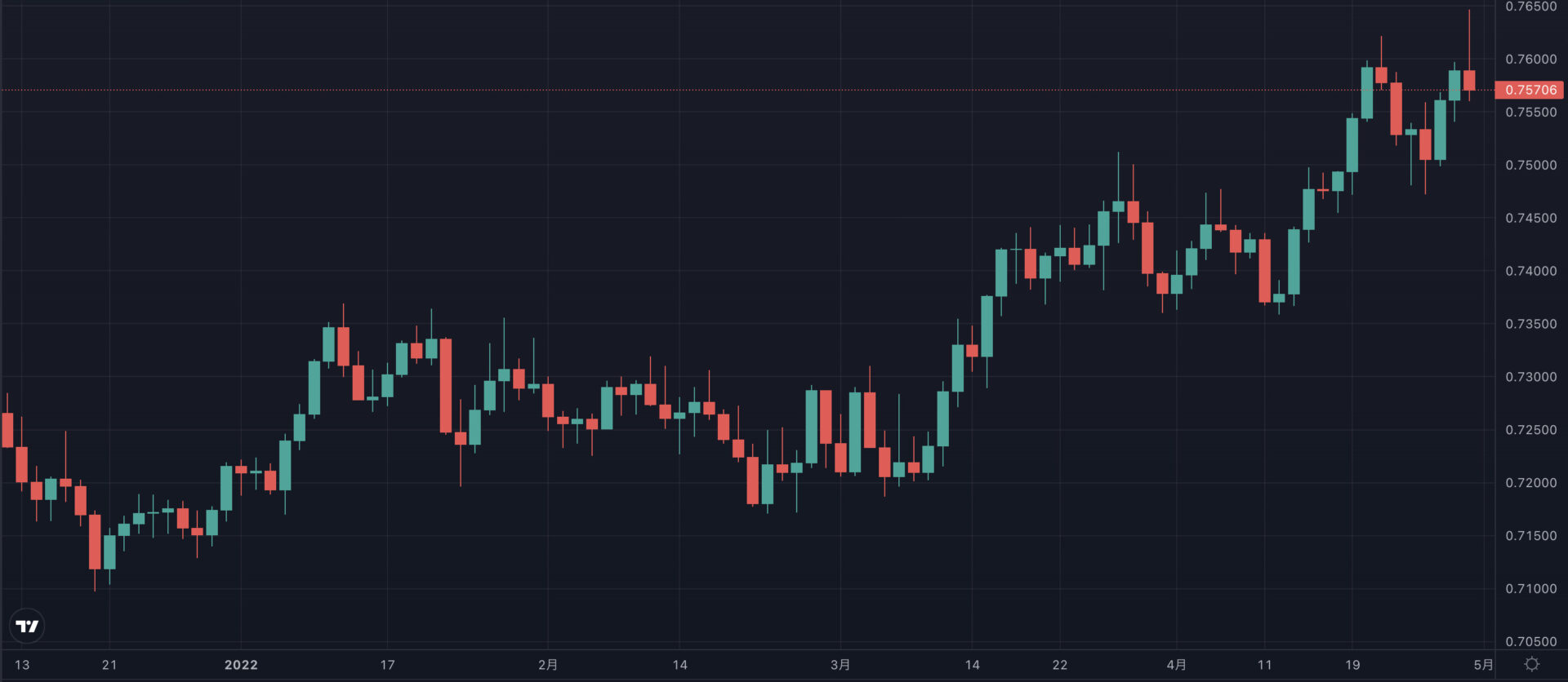 2022年以降、豪ドル/スイスフランは上昇傾向にあります。