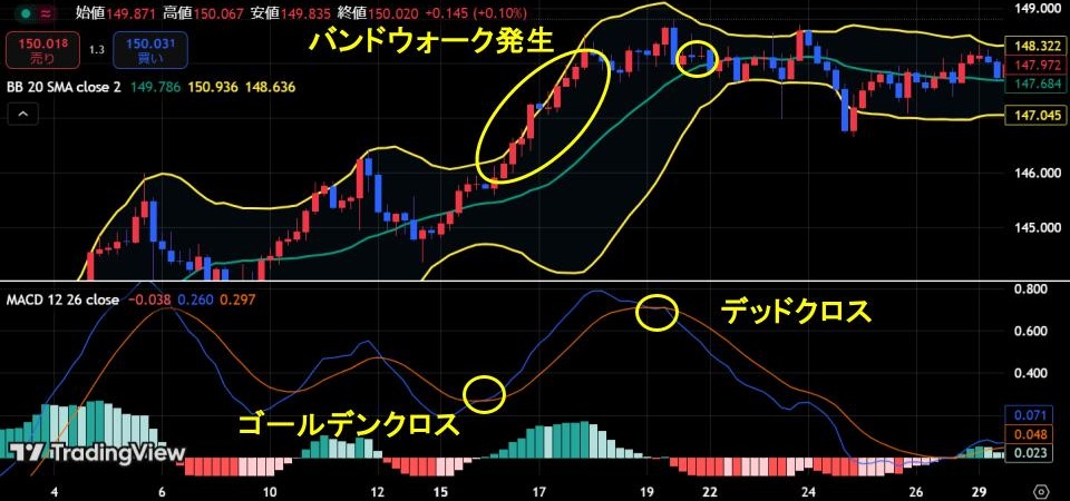 ここでは、ボリンジャーバンドと相性が良いMACDとRSIとの併用方法を詳しく解説します。