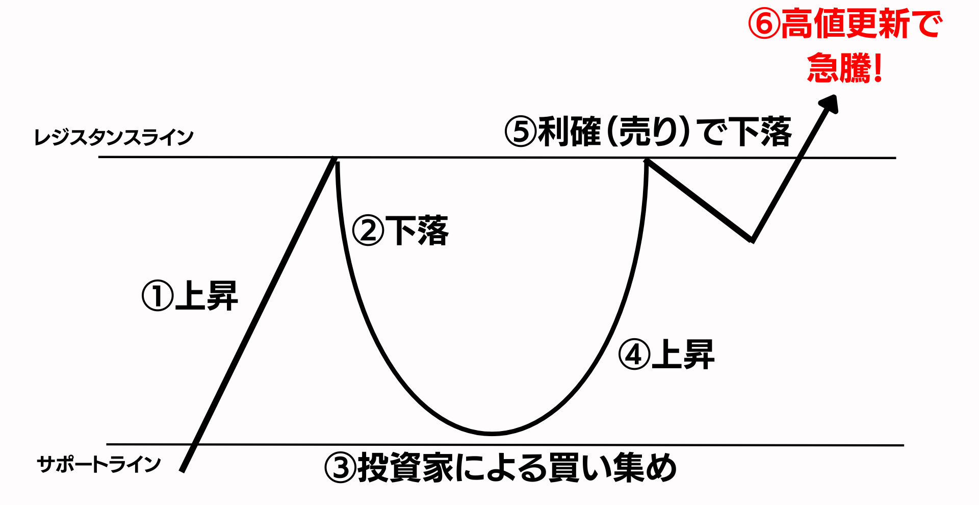 カップウィズハンドルの売買サインがだましとなるケースもあります。