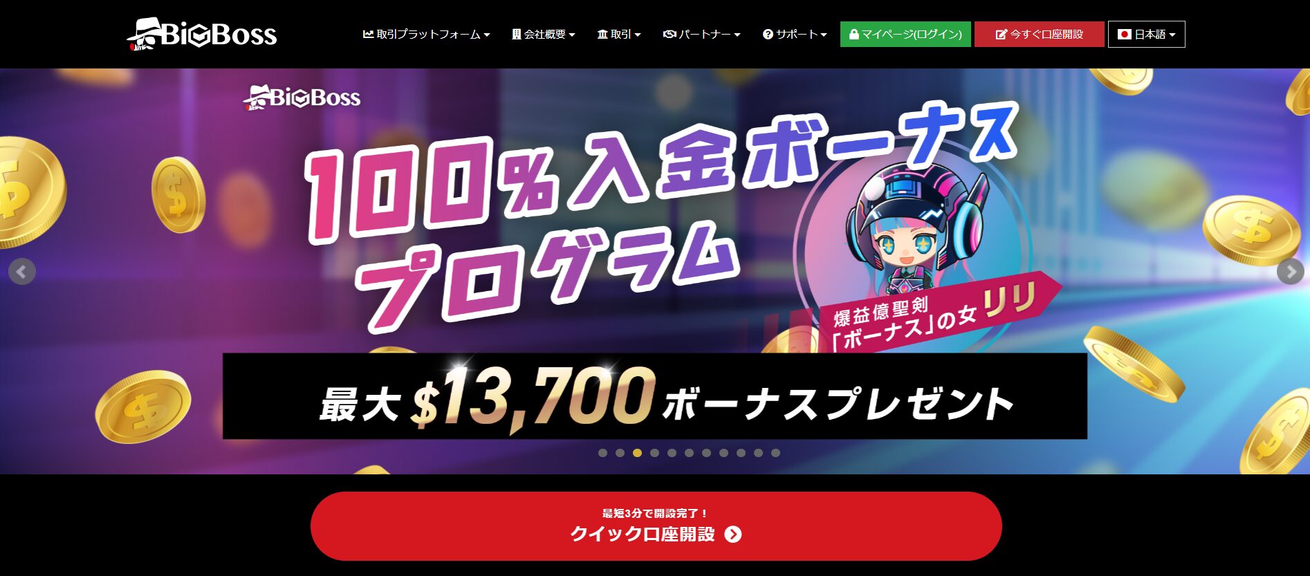 スプレッドが狭く、キャンペーンが充実しているFX業者を探している方には、BigBossをおすすめします。