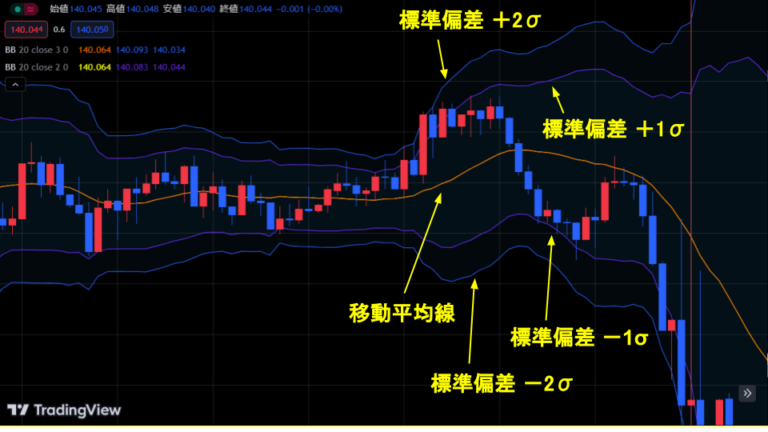 ボリンジャーバンドは、移動平均線と2本の標準偏差で構成されているインジケーターです。