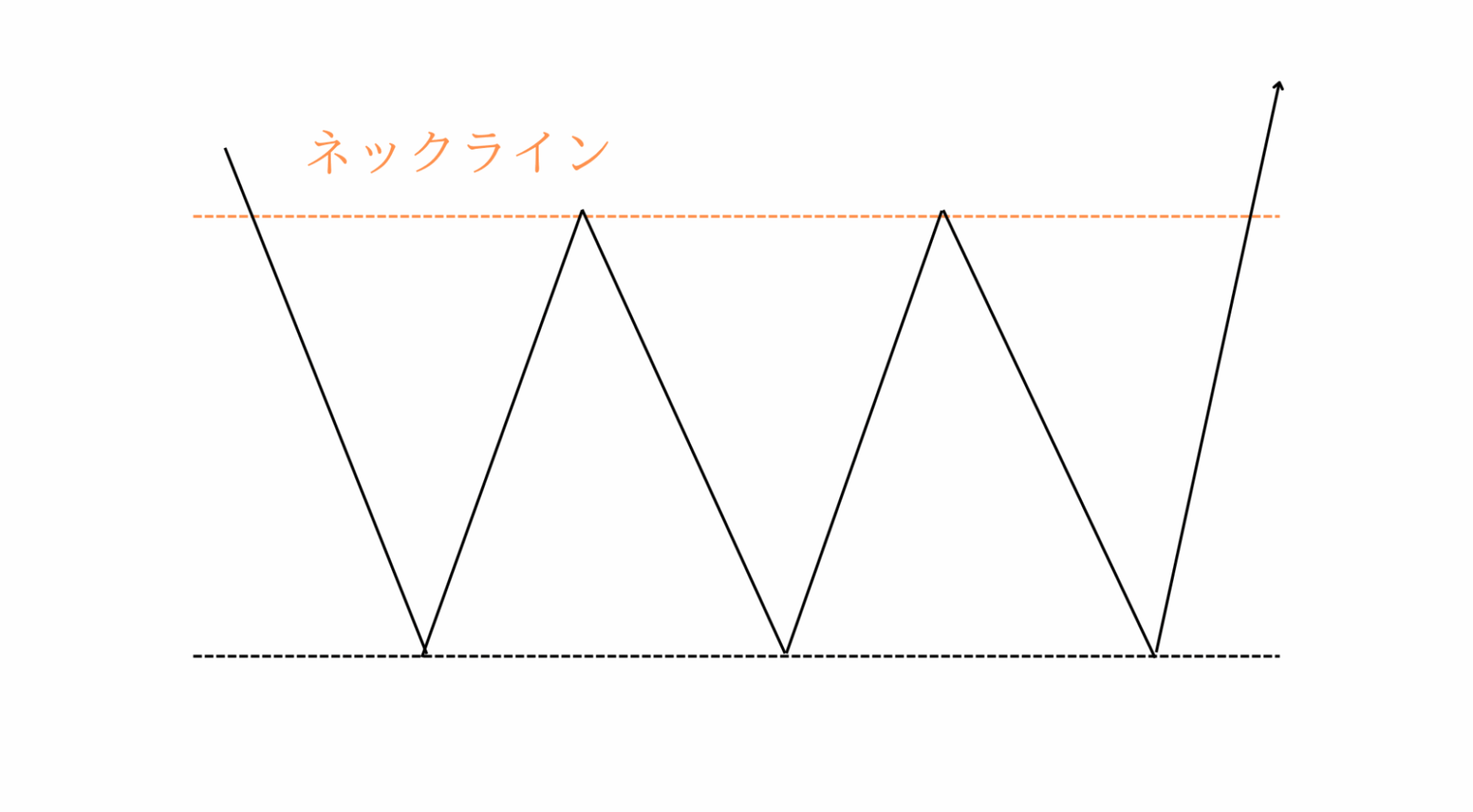 ダブルボトムとはダブルトップの反対で、Wの形状をしたパターンです。