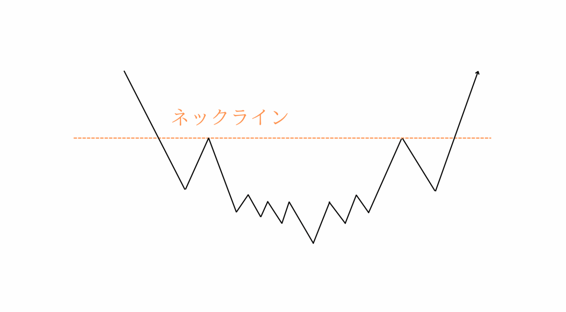 その後、再び上昇し取っ手を形成し、ネックラインを上抜けたところがエントリーポイントです。