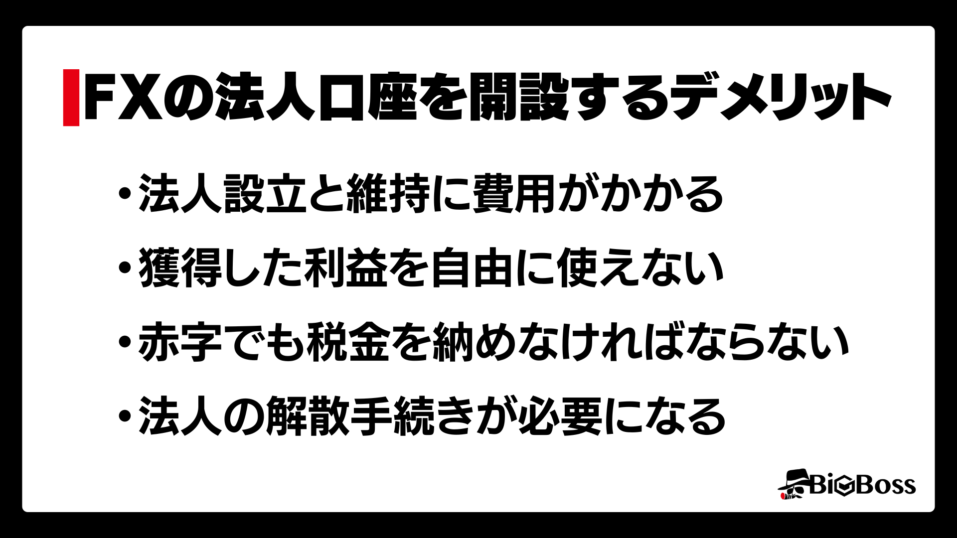 FXの法人口座を開設するデメリットには、以下のようなものがあります。