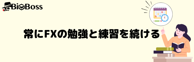ある程度の用語とトレード方法、テクニカル分析を使えるようになった状態で勉強をやめてしまうとトレーダーとして成長が止まってしまうため、FXの勉強は日々続けていきましょう。