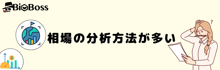 相場の分析方法の種類が多く、どれを使えばいいか迷ったり使うべき場面が異なるため、FXに難しさを感じてしまうのです。