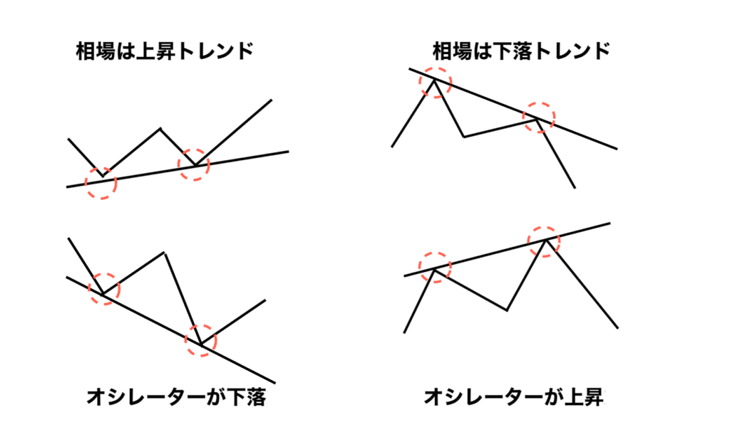 | ヒドゥン・ダイバージェンス | 安値が切り上がっている | 安値が切り下がっている | 買い |