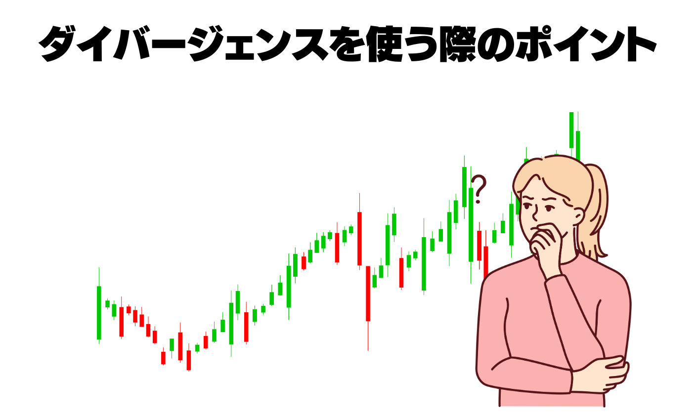 ダイバージェンスをFXトレードで使う際は、以下のポイントを押さえておきましょう。