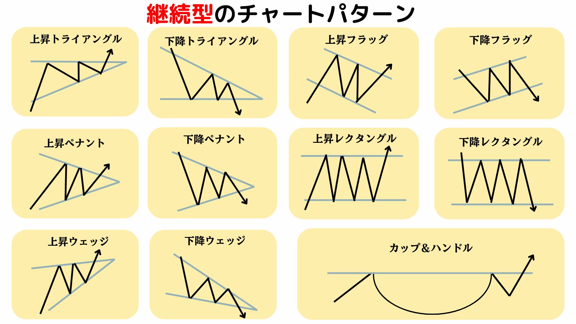 チャートパターンとは値動きの軌跡がチャート上に現れる特徴的な「型」のことでテクニカル分析の1つです。