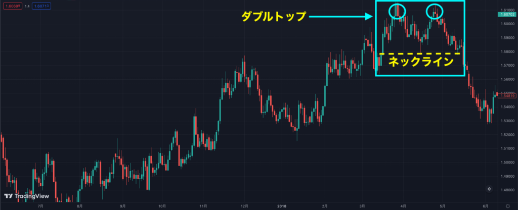 ここでは実際のチャートを使って形成されたダブルトップを見ていきましょう。