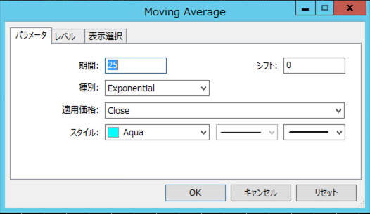 | 種別 | 移動平均線の種類を選択できる(初期設定はExponential) |