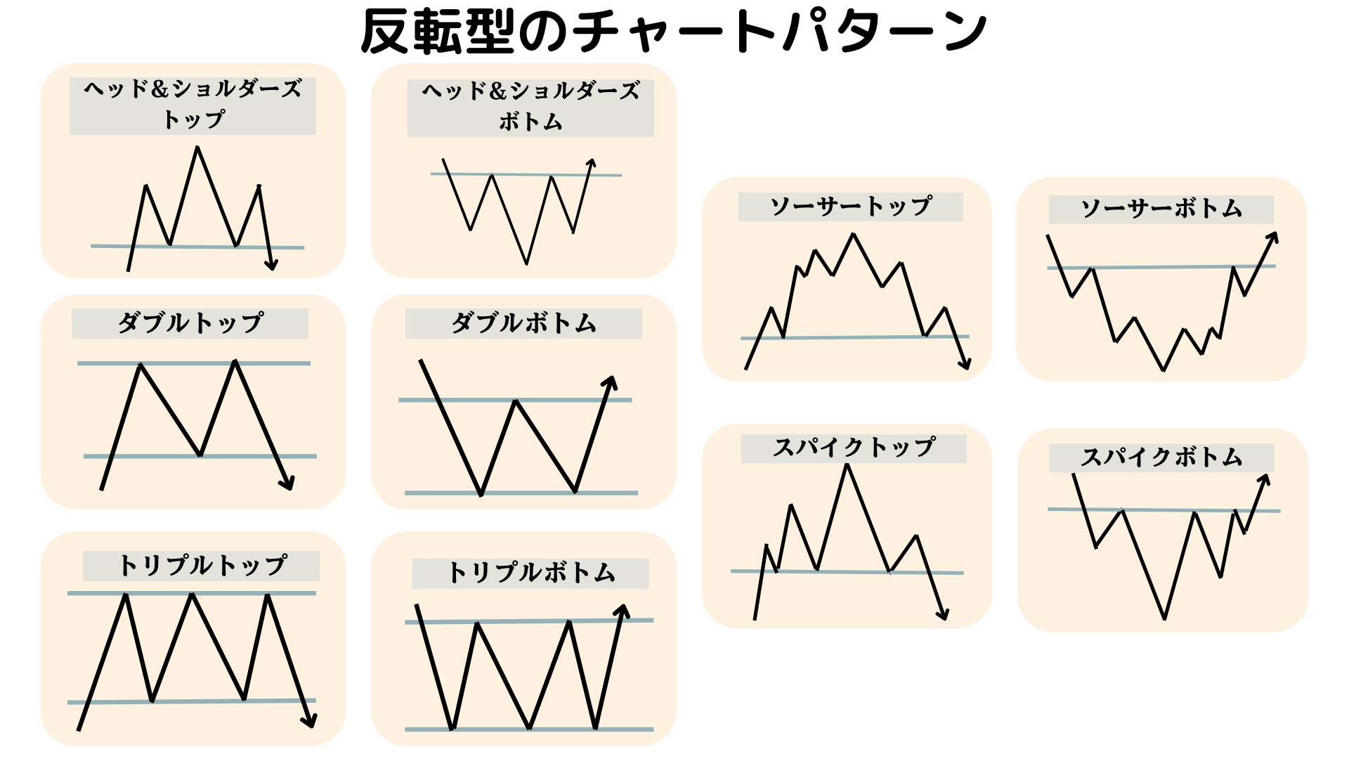 一方、反転型ではチャートパターン出現前後でトレンドが反転する可能性が高いとされています。