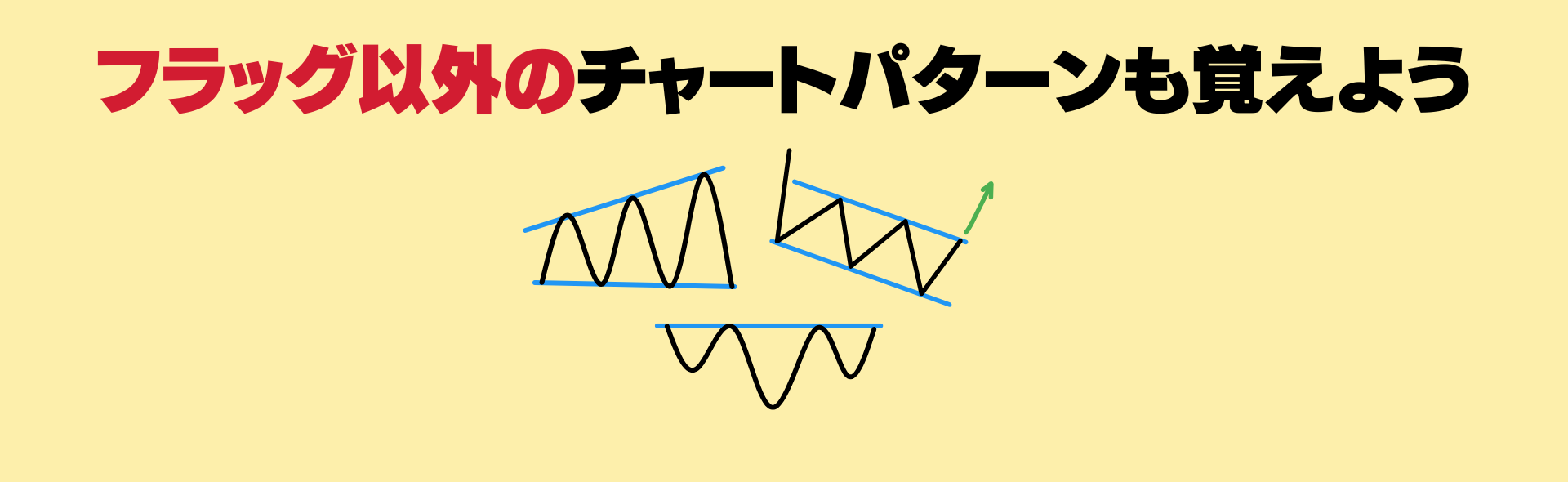 常にフラッグのみを狙うのではなく、他のチャートパターンも同時に狙ったり、テクニカル分析を使ってエントリーの機会を増やすと良いでしょう。
