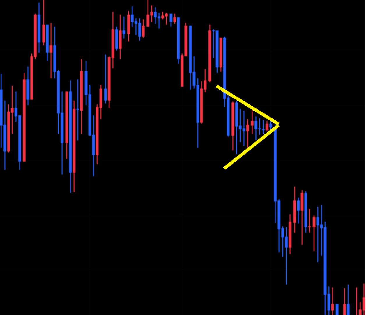 例えば、上昇トレンド中に上昇フラッグが出現したのにも関わらず、チャートが上昇ではなく下降方向にブレイクしてしまうことを指します。