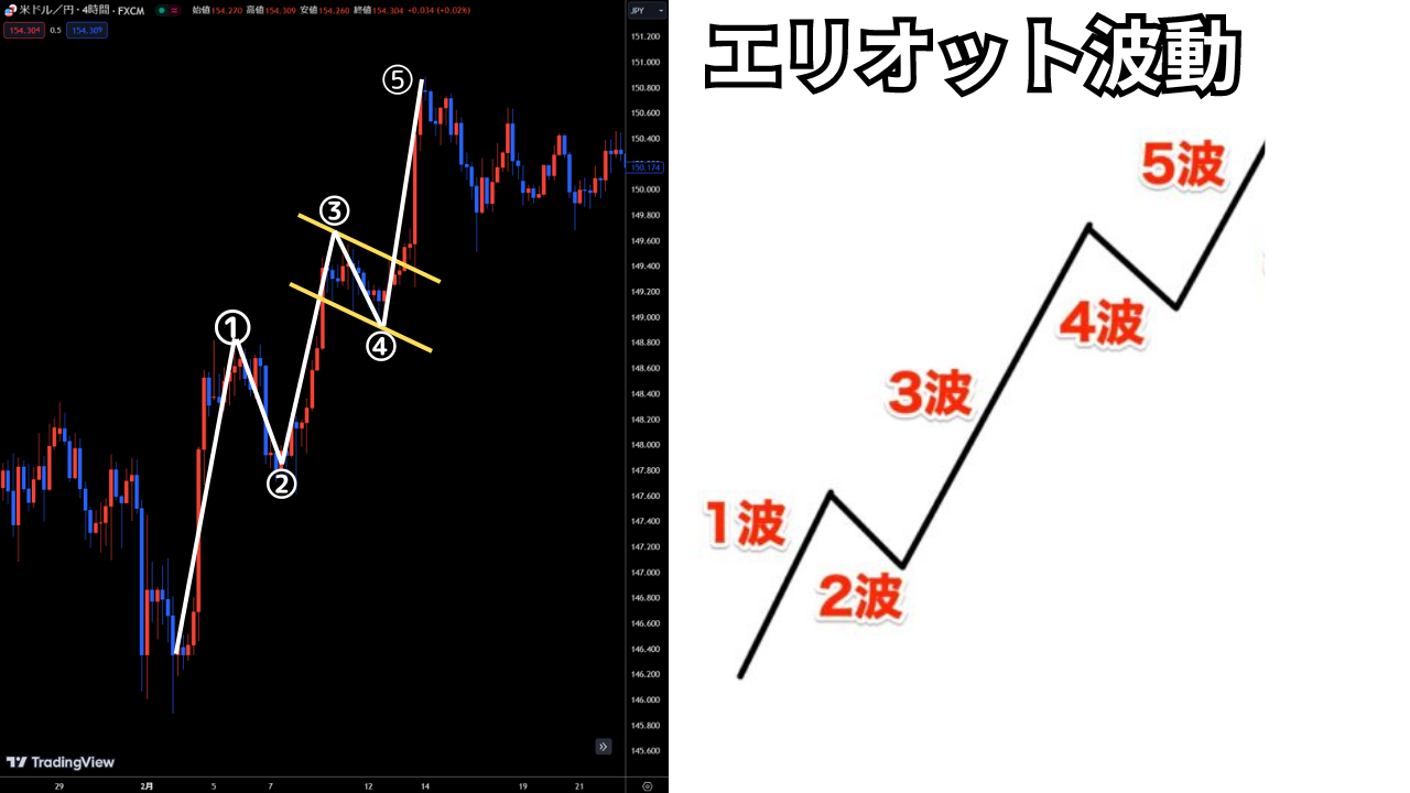 エリオット波動はチャートが描く波をパターン化したテクニカル分析です。