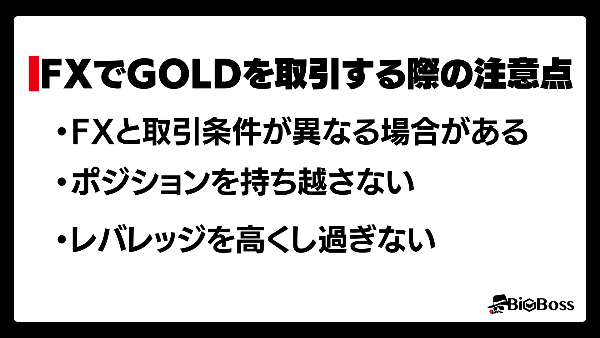 FXでゴールド取引をするときは、以下の点に注意しましょう。