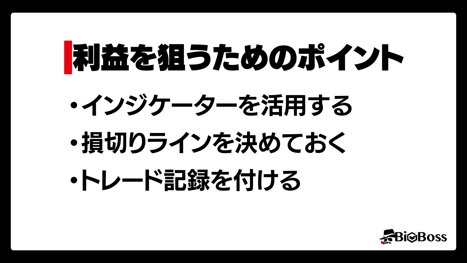 ただし、大きな損失を出すリスクもあるので、損切りラインの設定や根拠をもったトレードを徹底しましょう。