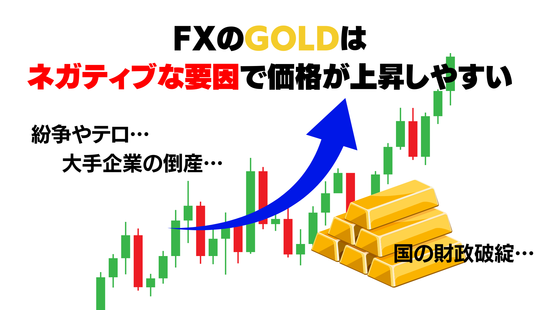 このような出来事が起こると、保有している通貨よりも安定した資産に交換したい人が増えるため、ゴールドの需要が高まり、価格が上昇しやすくなります。