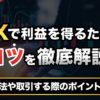 ただし、損失を被るリスクもあるので、相場の分析方法を学んだりリスク管理を徹底したりすることが大切です。