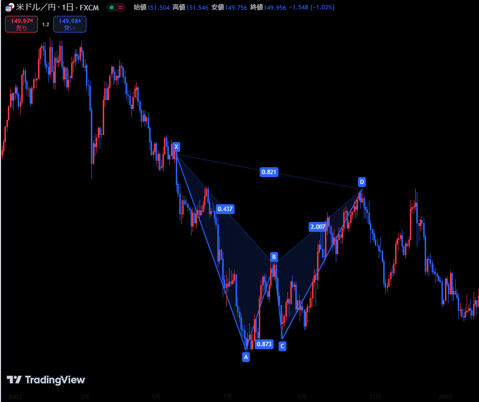 ハーモニックパターンは最後のD点が確認できて初めてガートレーやバタフライと認識できます。