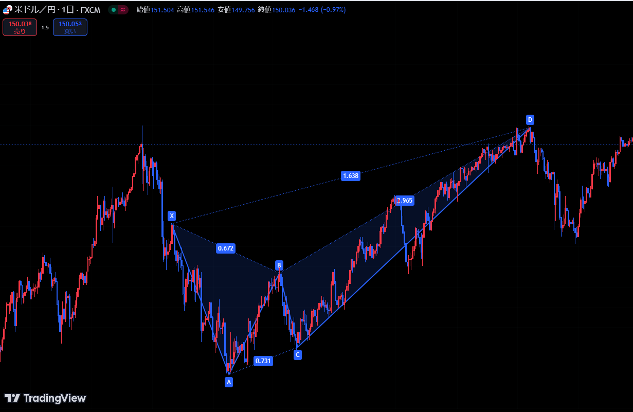 パターンが適切に形成されていなければ、D点での反転は起こらないため、最後までチャートを確認することが大切です。