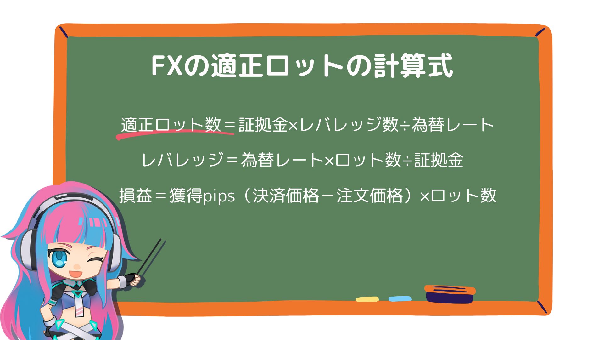 適正ロットは「証拠金×レバレッジ数÷為替レート」で求めることができます。