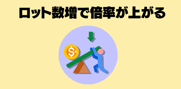 実際の取引では、レバレッジの倍率を設定するのではなく、ロット数を増やすことで倍率が上がります。