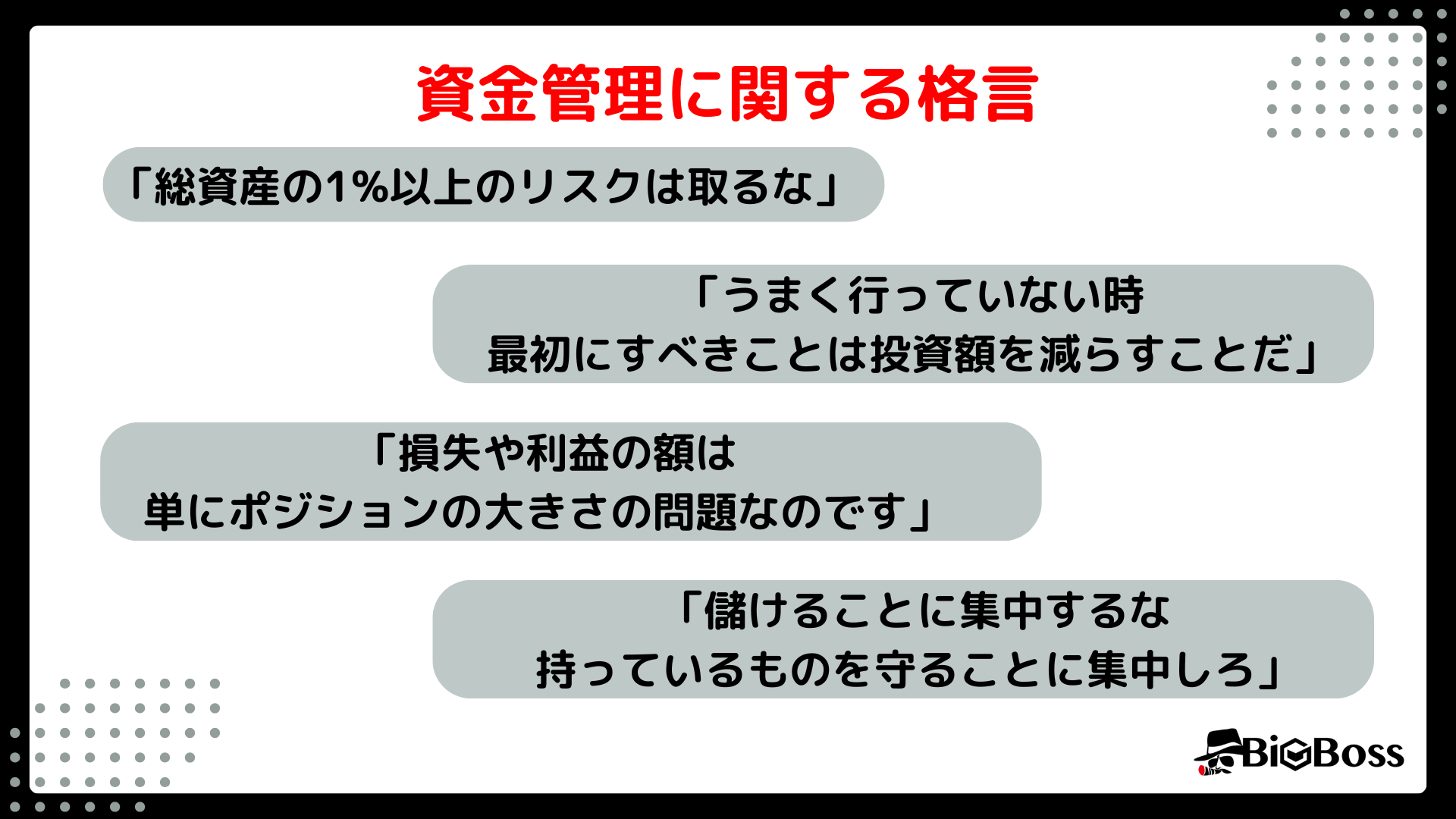 - 資金管理に悩んでいる人向けの格言
