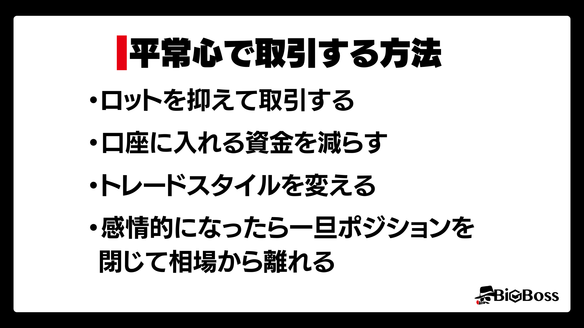 なぜなら、既に一度同じような経験をして慣れていくからです。感情が落ち着いた状態で取引を繰り返せるようにしましょう。