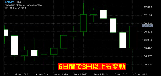 通貨ペアは1日単位で見ると数円の値動きがあります。