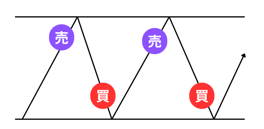 相場の方向に乗って売買するのではなく、相場に逆らって売買します。