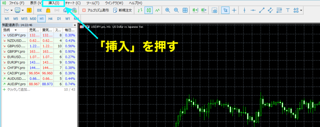 MT5でパーフェクトオーダーを設定する手順について紹介します。