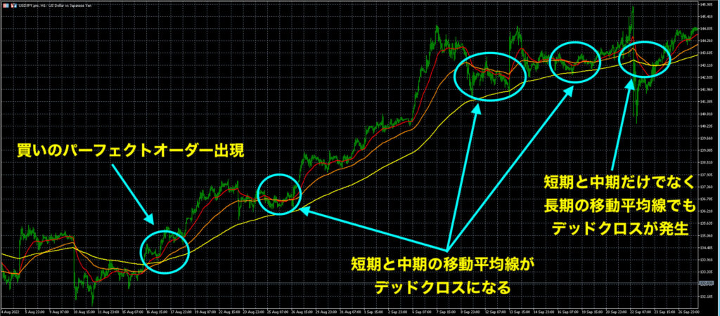 パーフェクトオーダーが発生しても、毎回トレンド相場になるわけではありません。