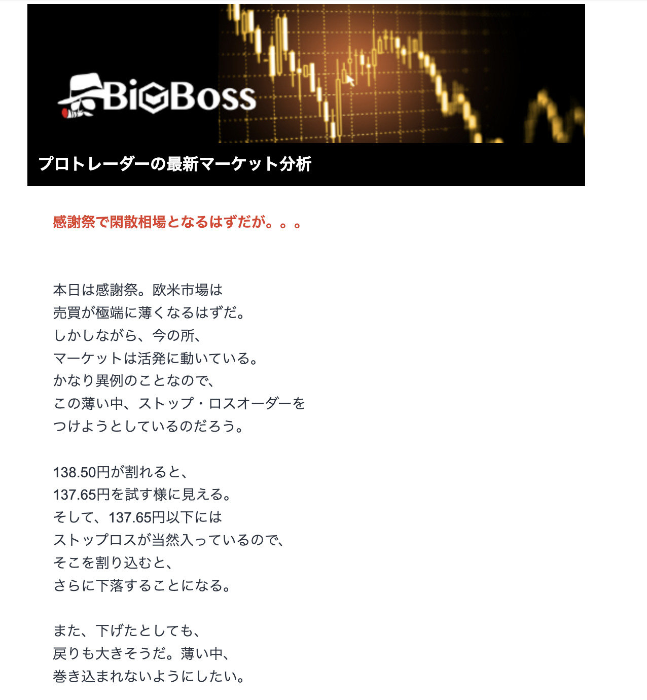 BigBossでは、最新マーケット情報のメールマガジンを配信しています。